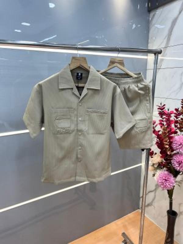 Gstar Grey Premium Imported Cotton Lycra Fabric Emboss Design Cord Set 3819