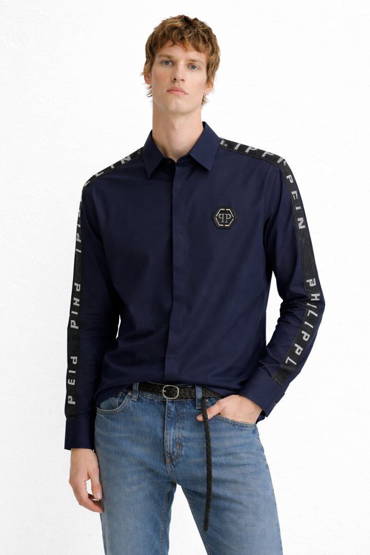 • Lacost e Embroidery Logo Lining Premium Navy Shirt F3428-NY